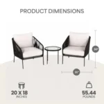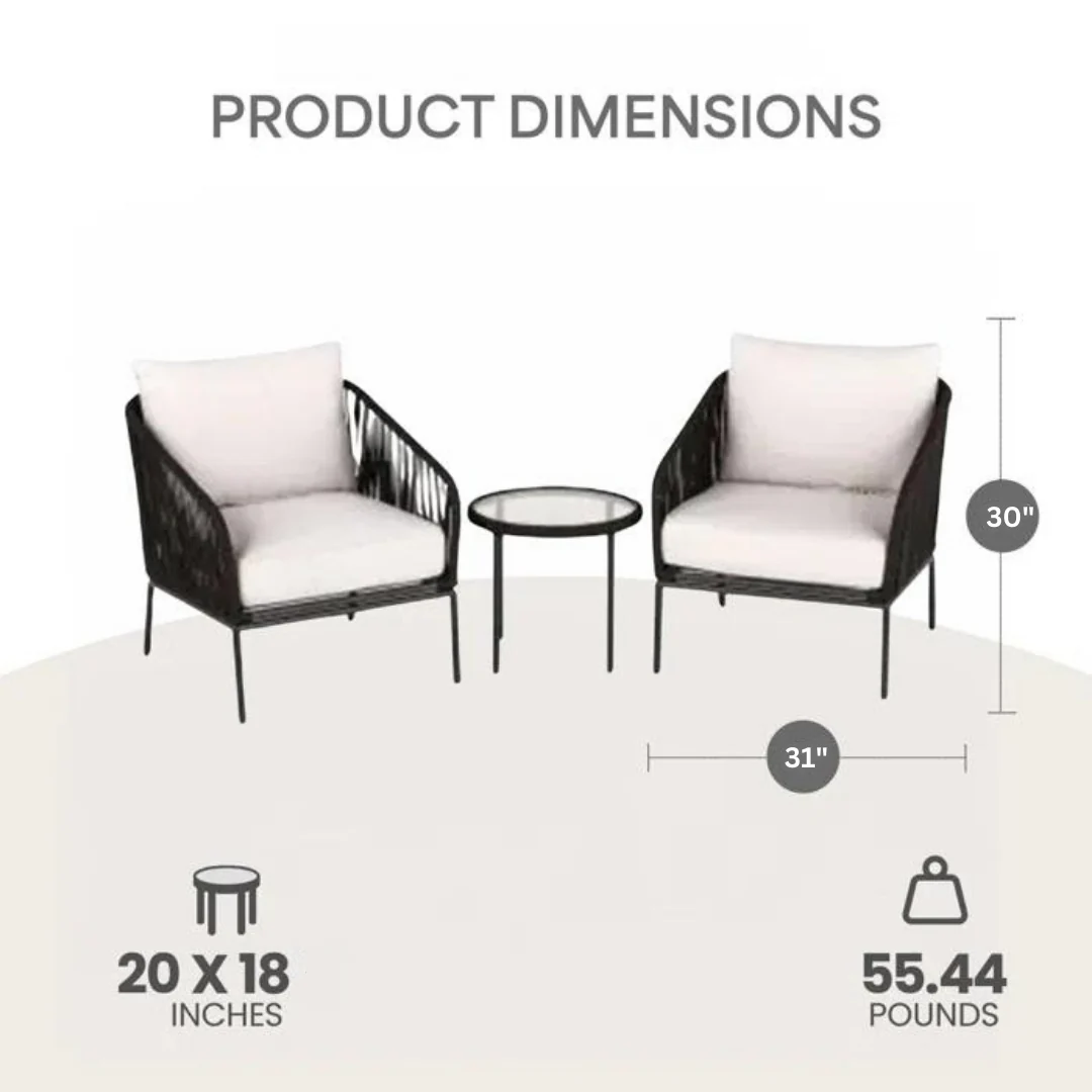 Alwin Outdoor Patio Seating Set 2 Chairs and 1 Table Set (Black) Braided And Rope
