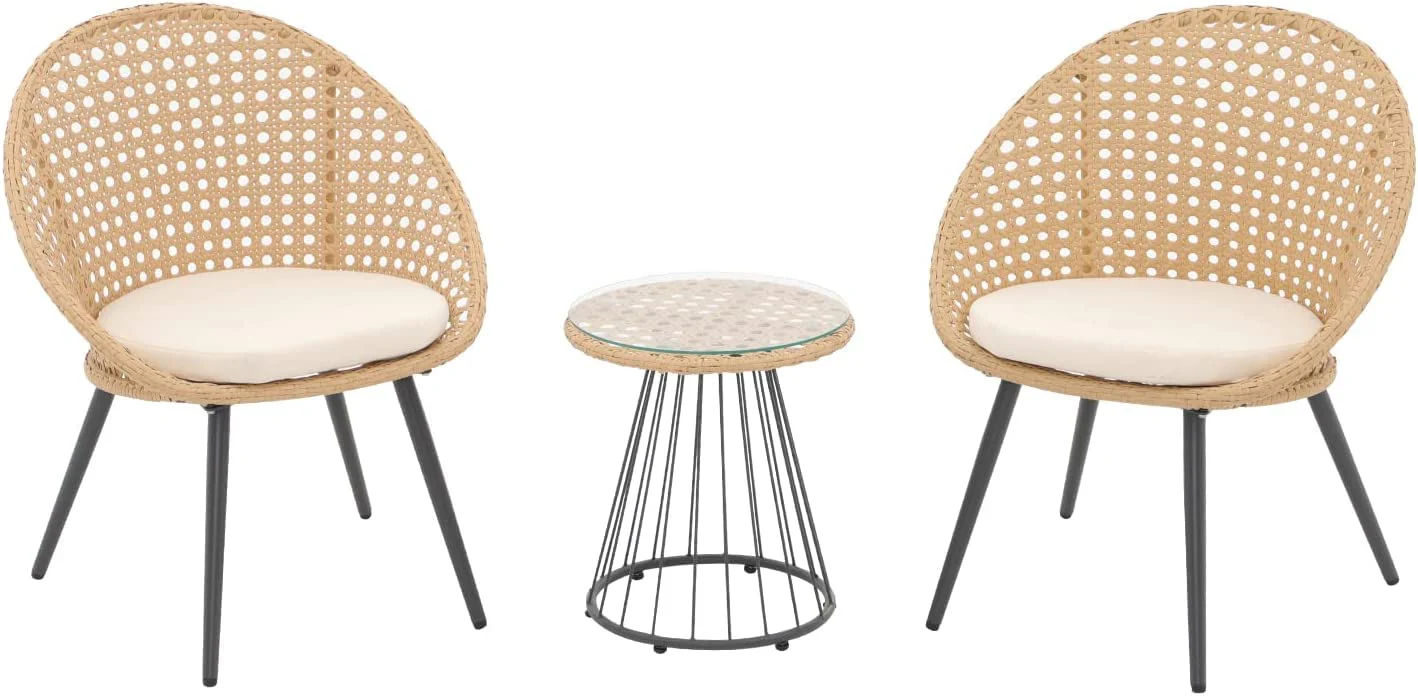 Hell Outdoor Patio Seating Set 2 Chairs and 1 Table Set (Tan + White)