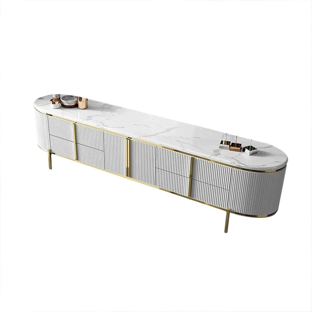 【Ample Storage】Equipped with drawers, shelves, and doors, it will provide you enough space to store your books, DVDs, CDs, etc. An oval smooth and wear-resistant marble tabletop can not only house your cable boxes and media players but also showcase art pieces, decorations, framed photos, and more.