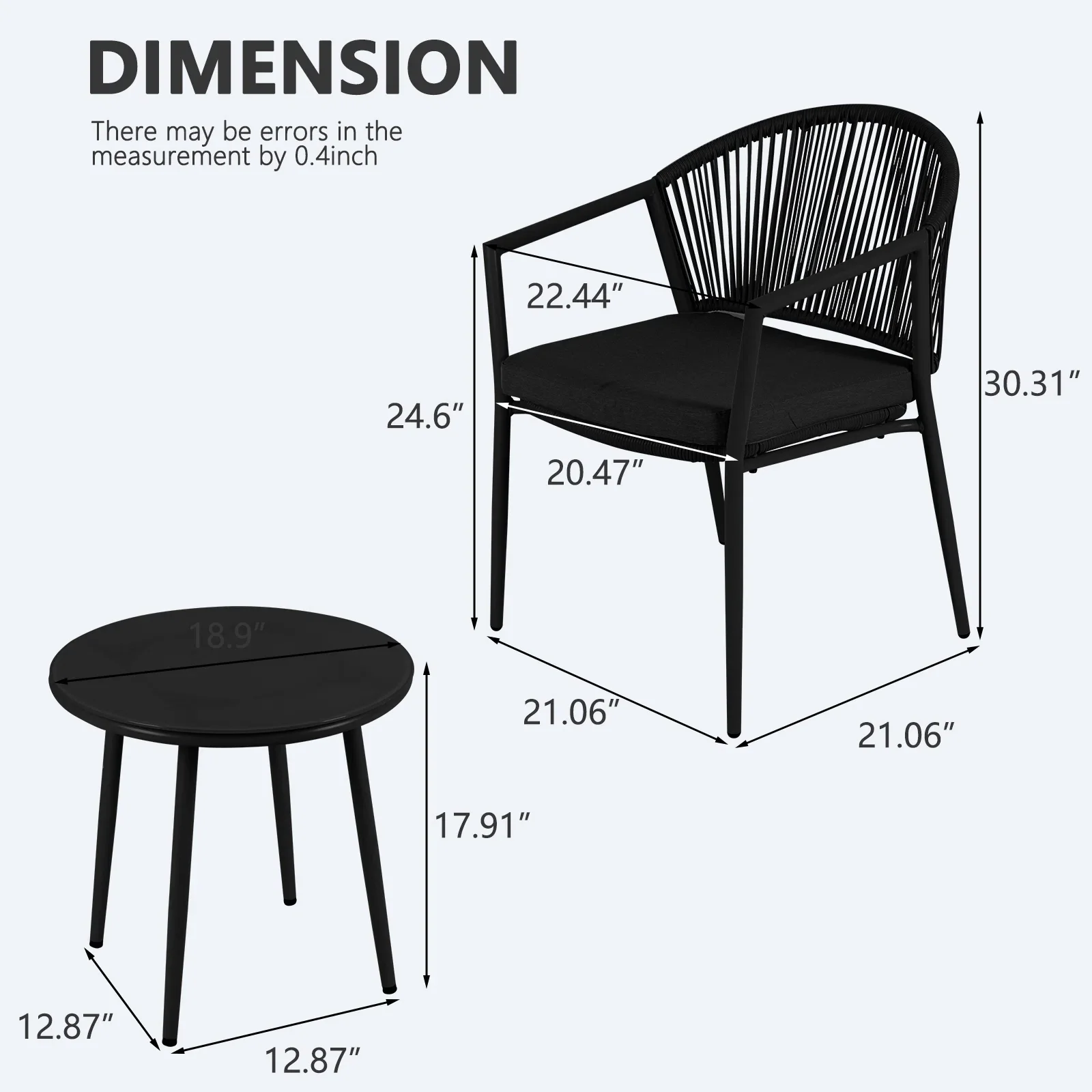Table: 17” H X 12” L X 12” D