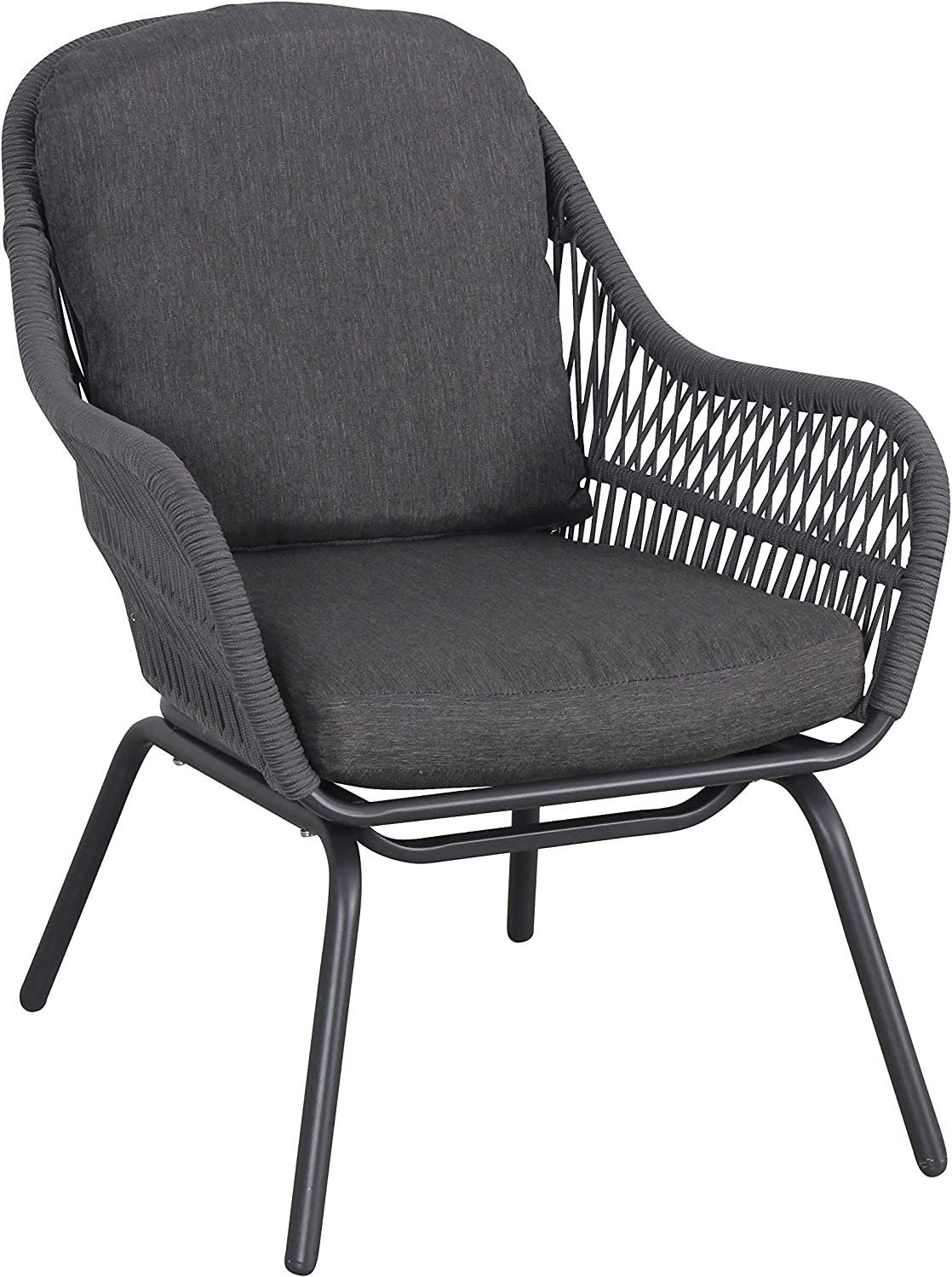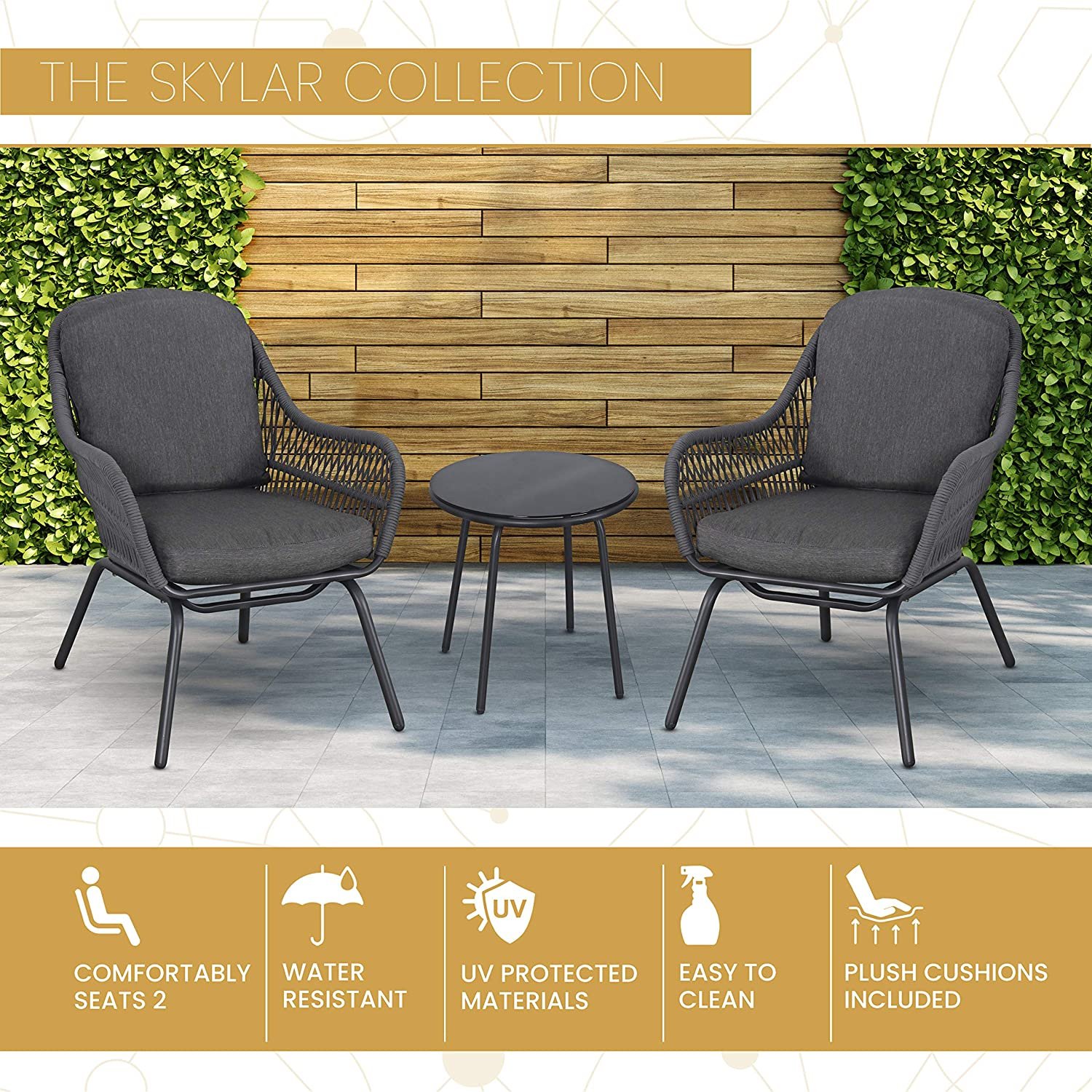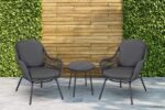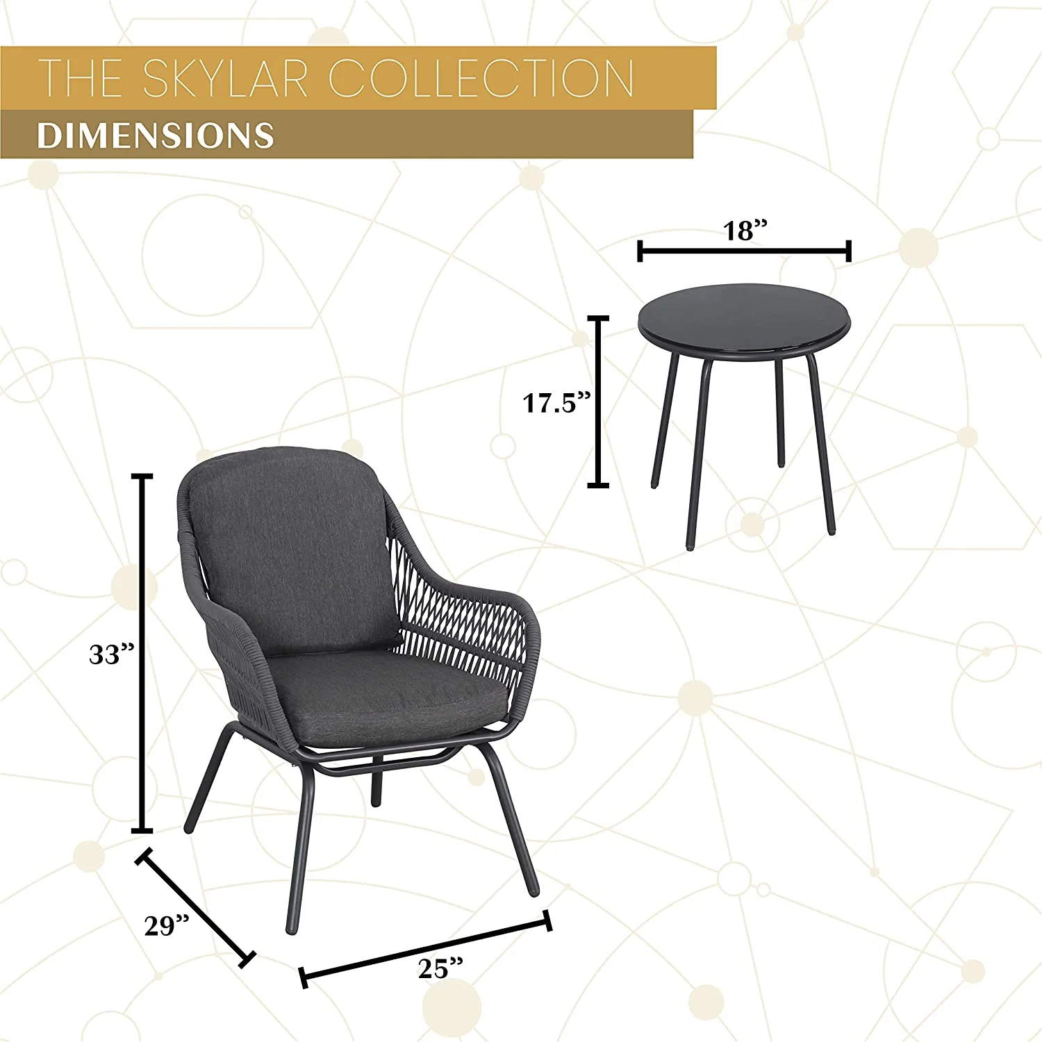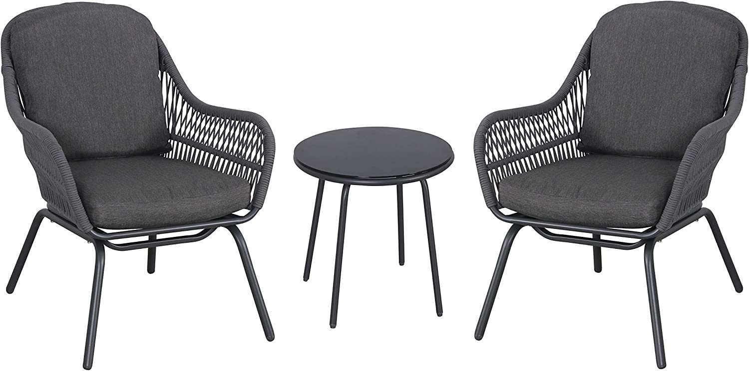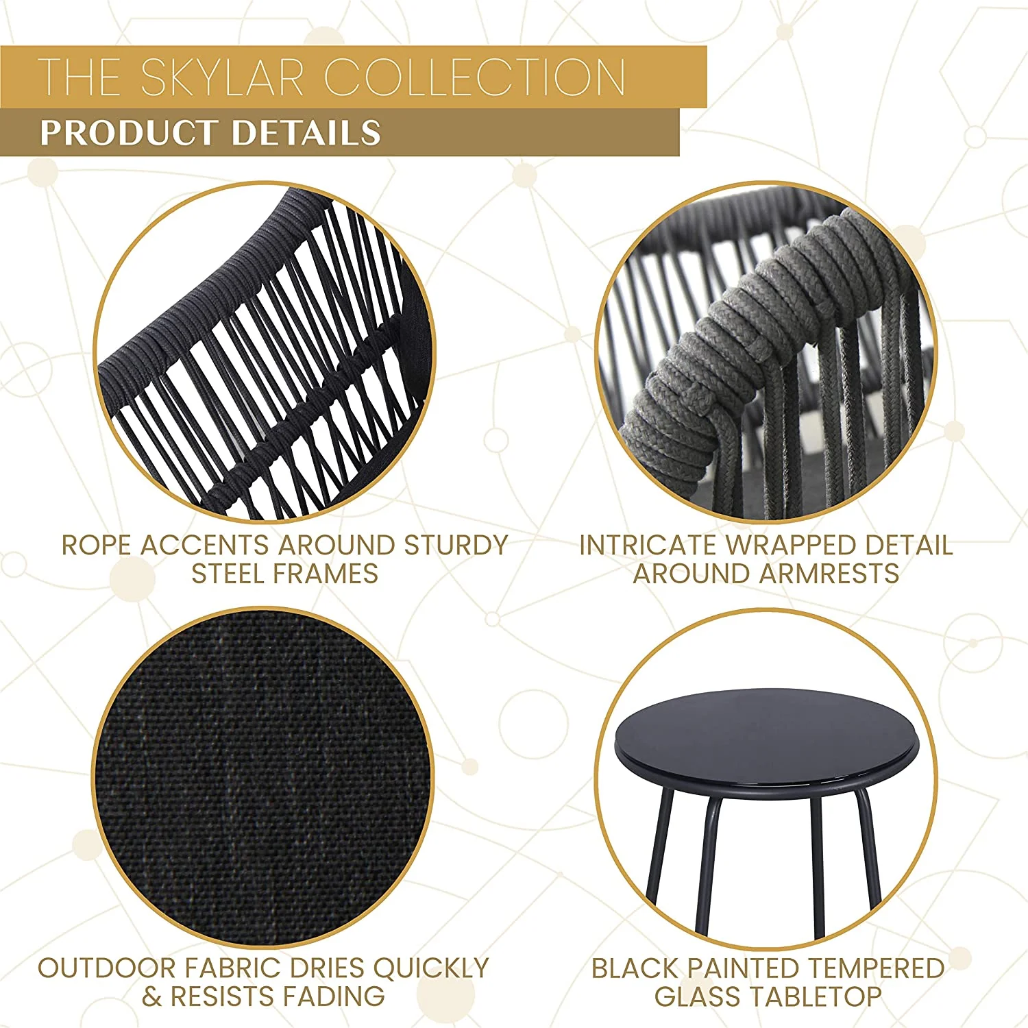 Pillar Outdoor Patio Seating Set 2 Chairs and 1 Table Set (Dark Grey) Braided & Rope